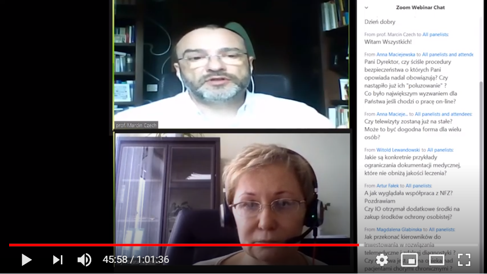 The on-line meeting “Covid-19: Jakie niedoskonałości w systemie zdrowia ujawnił?” was held on 10 June. During the meeting there was discussed the impact of coronavirus on the healthcare system. The webinar was hosted by prof. Marcin Czech, WUT BS lecturer and dr Beata Jagielska, Vicedirector of the Oncology Institute in Warsaw. Webinar was conducted in Polish.